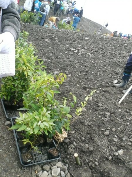 今回は処理に困っている瓦礫も植えて、その空間がさらに根を張るのに適しているそう。
